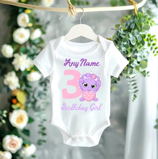 All Sizes Cute Little Purple Dinosaur Custom Personalized Name Birthday Pink Blue Purple Ribbon Sewn Tutu Outfit Set Dress