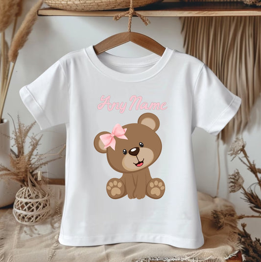 All Sizes Cute Little Teddy Bear Pink Custom Personalized Name Birthday Pink Gold Hot Pink Ribbon Sewn Tutu Outfit Set Dress