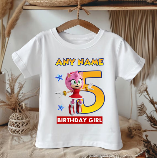All Sizes Sonic the Hedgehog Movie Amy Rose Custom Personalized Name Birthday Pink Red Gold Ribbon Sewn Tutu Outfit Set Dress