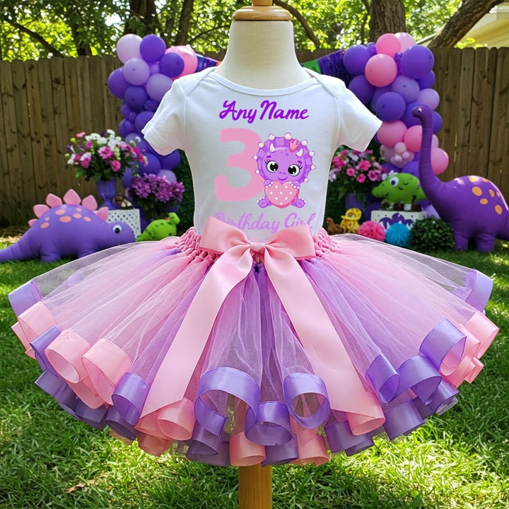 All Sizes Cute Little Purple Dinosaur Custom Personalized Name Birthday Pink Purple Ribbon Sewn Tutu Outfit Set Dress