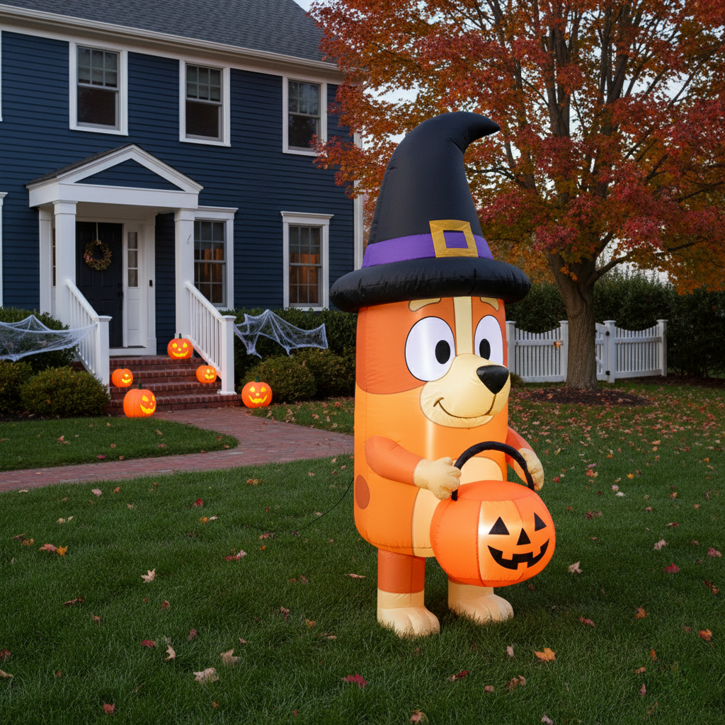 Bluey Bingo Heeler Dog Witch Costume 4 Foot Yard Inflatable Blow Up Halloween Party Gift