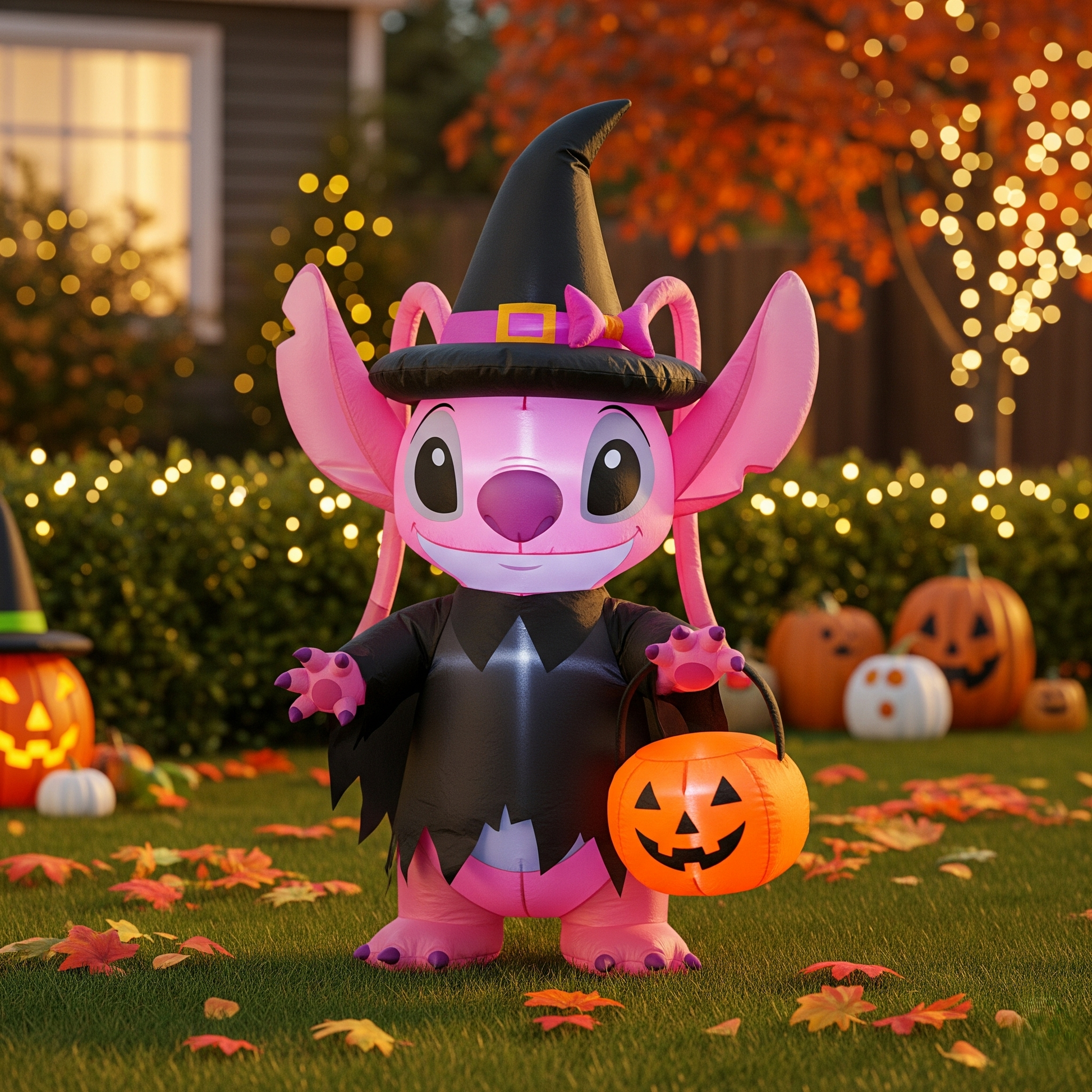 Stitch Angel Alien Witch Costume 4 Foot Yard Inflatable Blow Up Halloween Party Gift